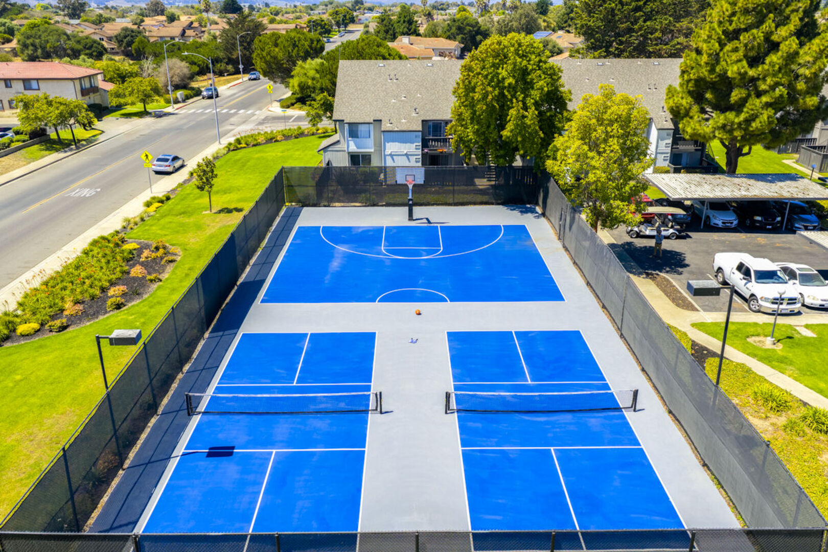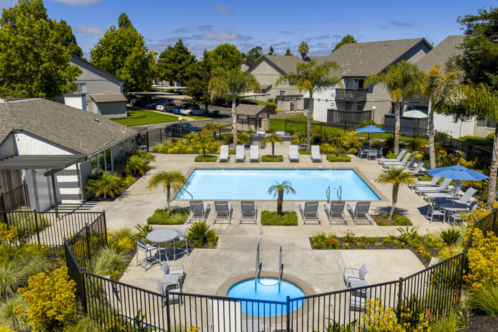Enjoy an invigorating game of tennis or basketball, relax in one of our warm whirlpool spas or take a refreshing swim in one of our two sparkling pools.